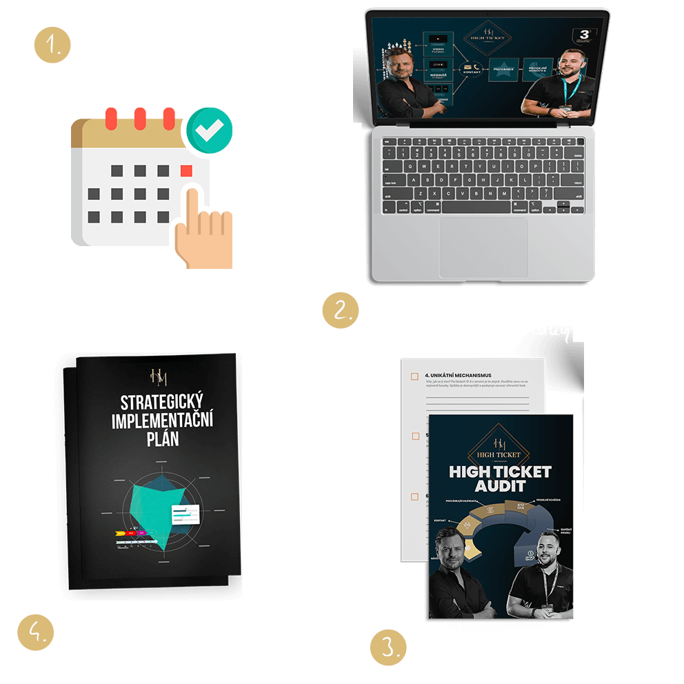 Jakmile víte co je špatně, je potřeba vědět jak to napravit. A proto od nás získáte strategický plán s konkrétními kroky, které je potřeba implementovat pro maximální zvýšení vašich prodejů díky vaší High Ticket nabídce.